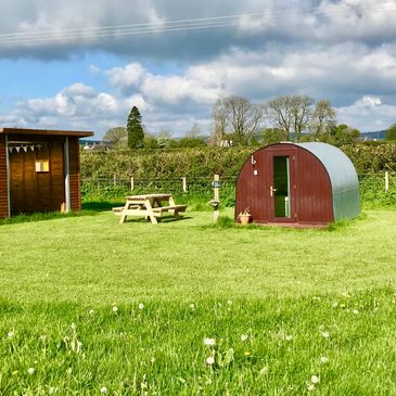 Hilltop Barn and Cwtch Barn are located in Taf valley view field. Both 8ft x 8ft they share a camping kitchen with seperate cooking areas. Perfect to book both barns for friends or family.