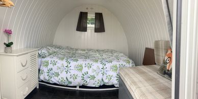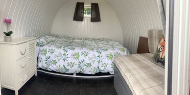 Hill Top and Cwtch pods each have a double convertible bed with mattress foam cushions for a good nights sleep.